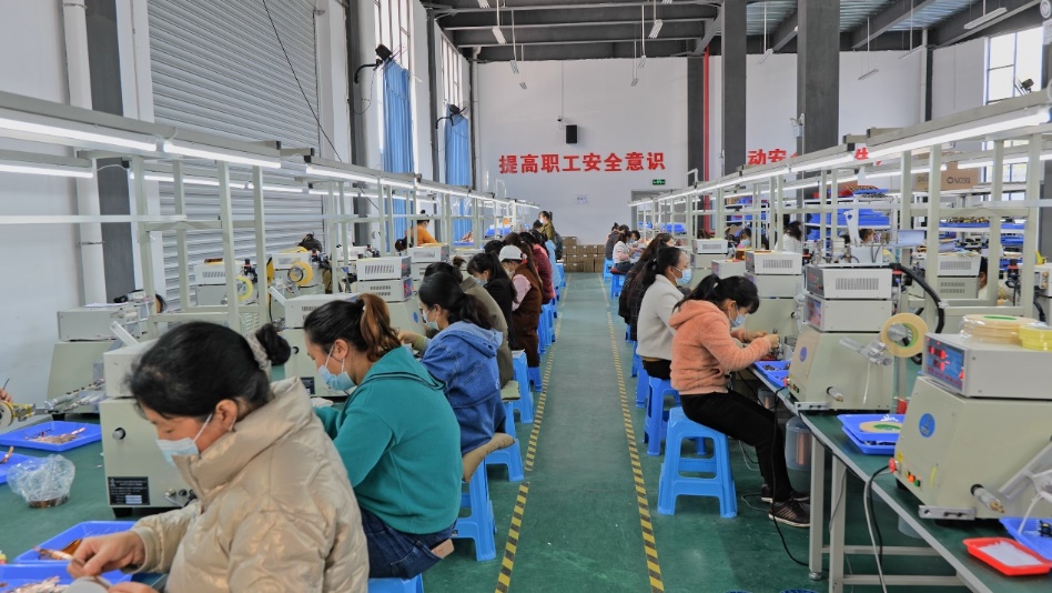聚緣村是梁河縣農(nóng)戶來源最廣泛、建檔立卡戶占比最高的易地搬遷新村,安置了全縣9個鄉(xiāng)鎮(zhèn)易地搬遷群眾190戶768人,建檔立卡戶占比73%。習(xí)近平總書記強(qiáng)調(diào):“樂業(yè)才能安居,解決好就業(yè)問題,才能確保搬遷群眾穩(wěn)得住、逐步能致富,防止返貧。”為擴(kuò)展聚緣村搬遷群眾的收入來源,中國有色集團(tuán)投資265萬元幫扶扶貧車間一座,引入電子器件裝配加工企業(yè)和農(nóng)業(yè)公司,投入資金對車間脫貧員工進(jìn)行上崗培訓(xùn),實(shí)現(xiàn)了搬遷勞動力家門口就業(yè)。楊國敏已連續(xù)多月蟬聯(lián)生產(chǎn)效率榜榜首,工資每月最高可以拿到4千多,她一邊熟練地組裝著手里的器件,一邊說道:“在搬遷之前我就發(fā)愁以后要怎么謀生,沒想到幫扶單位中國有色集團(tuán)早為我們謀劃好了工作問題,通過參加組織的培訓(xùn),提高了技能熟練度,在家門口從農(nóng)民變成了藍(lán)領(lǐng)工人,現(xiàn)在車間的員工人均每月都能拿到3000多的工資。”