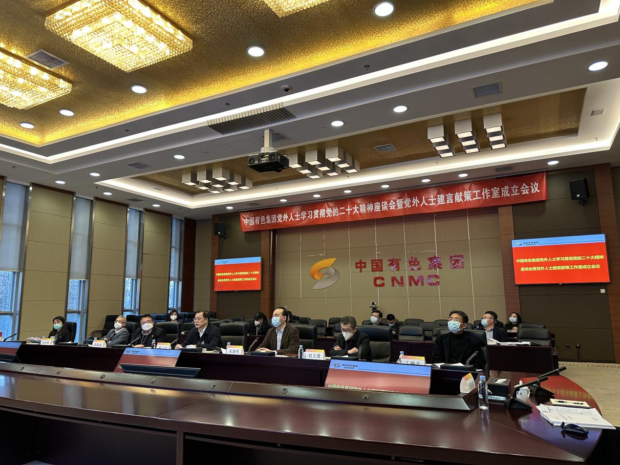 12月29日,中國有色集團“開黨外人士學(xué)習(xí)貫徹黨的二十大精神座談會暨黨外人士建言獻策工作室成立會議”在京召開。會議深入學(xué)習(xí)貫徹黨的二十大精神,全面貫徹落實中央統(tǒng)戰(zhàn)工作會議精神,成立集團公司黨外人士建言獻策工作室,聽取各方面黨外人士代表在學(xué)習(xí)黨的二十大精神、建言獻策工作室建設(shè)、推動統(tǒng)戰(zhàn)工作發(fā)展等方面的體會認識和意見建議,分析當(dāng)前形勢,安排部署下一步統(tǒng)戰(zhàn)工作。中國有色集團董事長、黨委書記奚正平出席會議并講話。