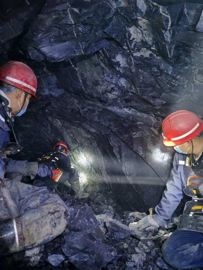 圖丨赤峰大井子礦業二采區技術室地測組成員現場勘查揭露礦體具體狀態數據