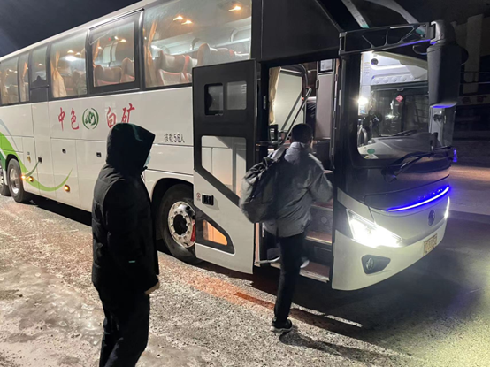 圖丨中色白礦開通礦區(qū)到縣鎮(zhèn)的通勤車