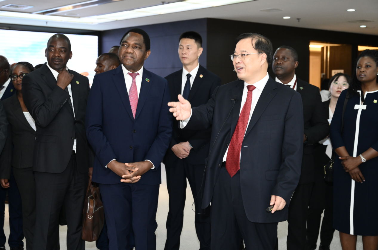 希奇萊馬總統在致辭中表示,在習近平主席的卓越領導下,中國實現了繁榮發展,此行一路上都感受到中國的巨大發展變化和中國人民的熱情好客,特別是參觀的幾家企業,讓我對中國的科技進步深感贊賞和欽佩。贊比亞政府高度重視經濟發展、科技進步和民生改善,擁有豐富的自然資源和良好的投資環境。希望更多優秀的中國企業到贊比亞投資興業,為贊比亞經濟社會發展特別是科技水平提升貢獻力量,實現合作共贏。贊比亞政府將一如既往珍視中贊傳統友誼,重視營商環境建設,未來也將出臺更多吸引投資的政策,為發展好兩國的深厚友誼作出更多努力。