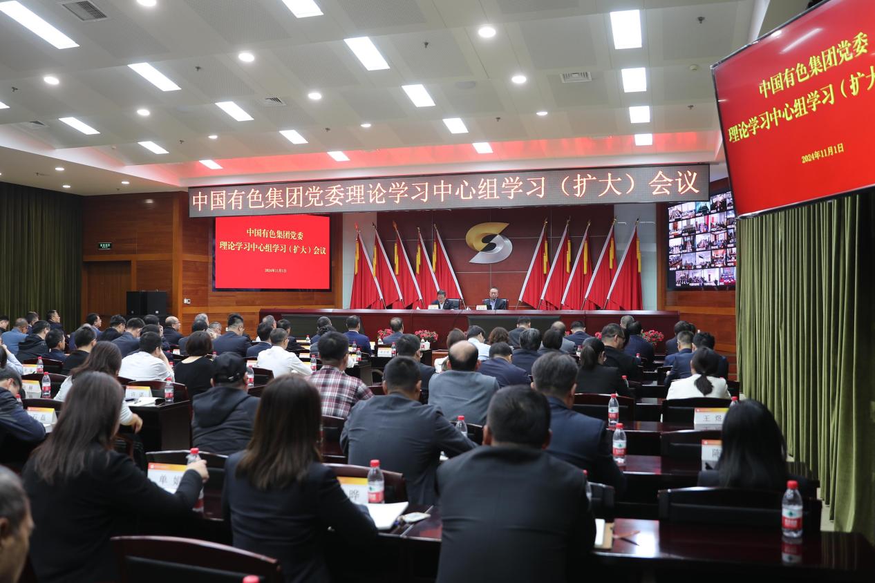 2024年11月1日下午,中國有色集團黨委召開理論學習中心組(擴大)會議,深入學習貫徹習近平法治思想,認真落實國務院國資委黨委部署,開展境外廉潔合規專題學習。中國有色集團黨委書記、董事長文崗主持會議并講話。