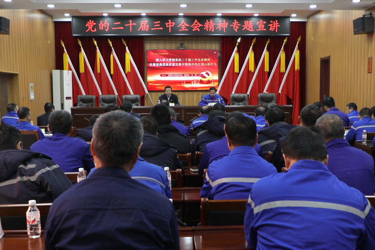 12月19日上午,文崗到中色紅透山銅鋅礦主持召開黨建聯系點座談會,與黨員、團青、黨外人士代表進行座談交流。他指出,礦山智能化建設是未來礦業企業發展的必然趨勢,要開闊思想觀念,認真思考自身未來的發展方向;要保持現有積極奮進的精神狀態,集中精力做好本職工作;要繼承老一輩礦工的技能和信念,把大家的智慧匯聚起來,推動中色紅透山高質量發展。座談會后,文崗以“深入學習貫徹黨的二十屆三中全會精神,在推進集團高質量發展中展現中色紅透山新作為”為題,為中色紅透山黨員干部作黨的二十屆三中全會精神專題宣講。