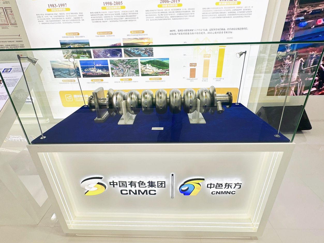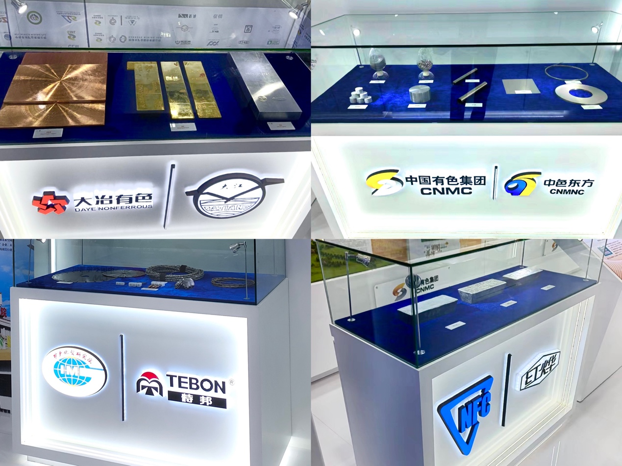 在產品展區,對集團所屬企業擁有獨立注冊商標品牌的產品進行了實物展示,包括中色東方的7cell超導腔、鉭鈮產品、鈹及鈹合金產品、銀產品、鈦及鈦合金、釩鋁合金產品,中色桂林院的納米硅粉、硅基負極材料、KTP電光開關、KTP倍頻器件、水熱法PPKTP器件、金剛石組合繩鋸、超硬合金刀等產品,中色大冶的陰極銅板、金銀錠產品,中色股份的鋅錠、鋅合金產品等一系列行業“拳頭”產品,均在相應區域展柜集中展示。