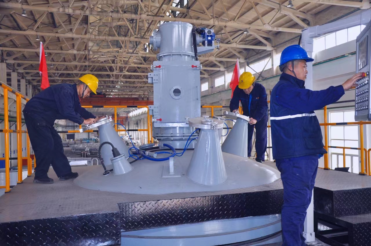 圖|中色奧博特銅箔黨支部課題攻關小組成員查看母材表面質量