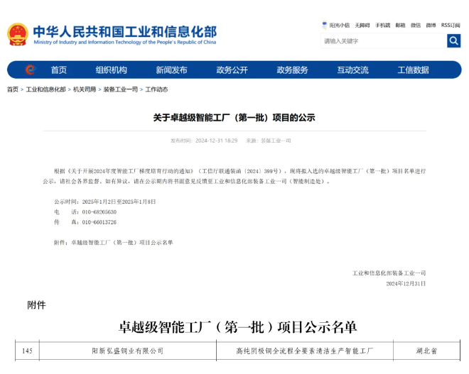 近日,工業(yè)和信息化部公示了卓越級(jí)智能工廠(第一批)項(xiàng)目名單。中國(guó)有色集團(tuán)所屬企業(yè)弘盛銅業(yè)有限公司(以下簡(jiǎn)稱“弘盛銅業(yè)”)成功入選工業(yè)和信息化部卓越級(jí)智能工廠。