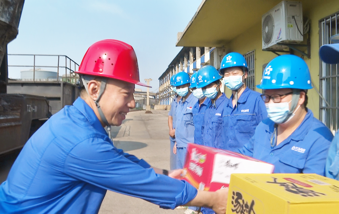 ????在物流公司鐵運分公司拉渣排班室前,公司領(lǐng)導(dǎo)對大家堅守崗位保生產(chǎn)作出的貢獻表示感謝,并叮囑大家勞逸結(jié)合,以良好的精神狀態(tài),保證運輸安全。